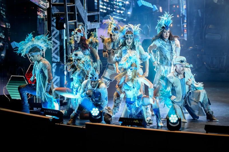 5-SKIES was created by director and choreographer Danny Teeson, Music Producer Nelson Kole, scenic designer John Iacovelli, costume designer Jackson Lowell, media designer David Murakami, lighting designer Brian Gale and sound designer Danny Fiandaca. Now available on Sky Princess® and on Enchanted Princess®.